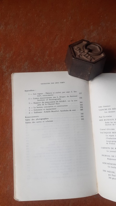 Ce grand classique reste un ouvrage indispensable pour tous les plaisanciers qui souhaitent entreprendre des navigations au long cours, et qui peut-être affronteront un jour un très gros coup de vent : mer déchaînée, lames déferlantes, rafales dévastatrices... Pourtant, il est peu fréquent que les plaisanciers, voire les navigateurs confirmés, y soient préparés, et beaucoup d'entre eux se sont ainsi retrouvés en péril. Les nombreuses informations techniques et les récits, consignés et analysés dans cet ouvrage, constituent une somme unique, un capital d'expériences vécues inestimable, dont la connaissance est primordiale pour affronter plus sereinement le gros temps. Voir le sommaire sur photos jointes.
