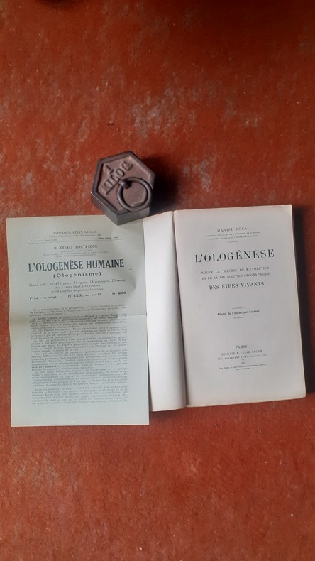 L'ouvrage, paru à l'origine à Florence (Ologenesi. 1918). Le zoologiste italien Daniele Rosa (1857-1944) propose une nouvelle théorie de l'évolution et de la distribution géographique des êtres vivants. Elle a inspiré l'anthropologue suisse Montandon, qui l'a appliquée aux êtres humains (on joint le "prière d'insérer" du livre du Dr Georges Montandon "L'ologénèse humaine (Ologénisme)"