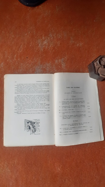 "Un livre articulant description culturelle, légitimation politique et fonction touristique. Structuré en cinq parties, il commence par la caractérisation du territoire, de la société et du patrimoine (Genius Loci, Congénialité et Fleurs du Terroir, Ulysboa, Jouvence de l’Azurie, Poèmes de Pierre), (L’Oeuvre accomplie, L’Ordre par l’Autorité Désintéressée, Points Faibles, Dictateur de soi-même, Exemple et Grandeur d’un Petit Pays, Parlamentarisme et Défense de l’Occident, Destin de la Lusitanie) et conclut avec des sections documentaires (données sur la géographie, le climat, l’histoire, la population, l’architecture, les arts et les coutumes), guide touristique (excursions dans le territoire) et informations pratiques (explique comment arriver au Portugal, hôtels, séjours et adresses utiles). Publié en pleine vigueur de l’Estado Novo, le livre constitue un instrument de diplomatie culturelle qui conjugue l’exaltation des paysages, traditions et monuments portugais avec la légitimation internationale du régime salazariste. Les thèmes mettent en évidence la superposition entre le discours esthétique-historique et le discours politique, révélant un récit qui construit simultanément l’identité nationale, promeut la destination touristique et soutient l’image externe du gouvernement autoritaire portugais. Voir le sommaire sur photos jointes".