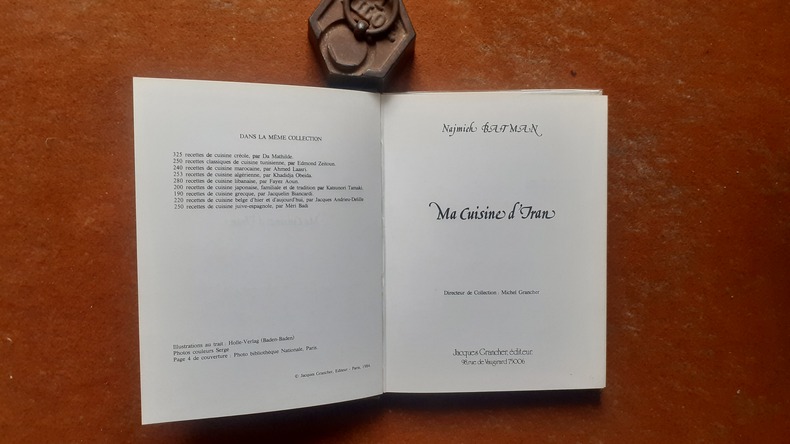 Née en Iran, Najmieh Batman nous livre 300 recettes traditionnelles qu'elle a adapté au goût français avec des produit qu'elle a trouvés chez nous. Une cuisine peu connue dont on appréciera l'originalité, la finesse et les nombreuses qualités nutritives. "Cette cuisine a l'exotisme et la simplicité des poèmes d'Omar Khayam, la richesse et la couleur des miniatures iraniennes". Voir le sommaire sur photos jointes.