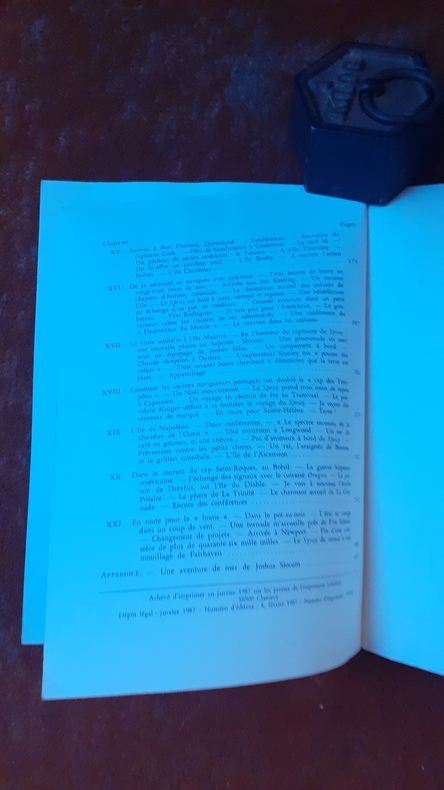 Joshua Slocum a été le premier navigateur à avoir réussi le tour du monde en solitaire. Il nous a laissé un passionnant journal de bord où il raconte son aventure. Parti de Boston le 24 avril 1895, il y revint le 27 juin 1898, après avoir parcouru plus de 46 000 milles à bord du "Spray". Depuis tous les navigateurs solitaires se réclament de Joshua Slocum comme de leur grand ancêtre commun, celui qui a montré la route et qui a été suivi par tant de disciples. Le traducteur Paul Budker, marin, savant, linguiste, a su rendre toutes les finesses rencontrées dans ce journal de bord. Voir sommaire sur photos jointes.