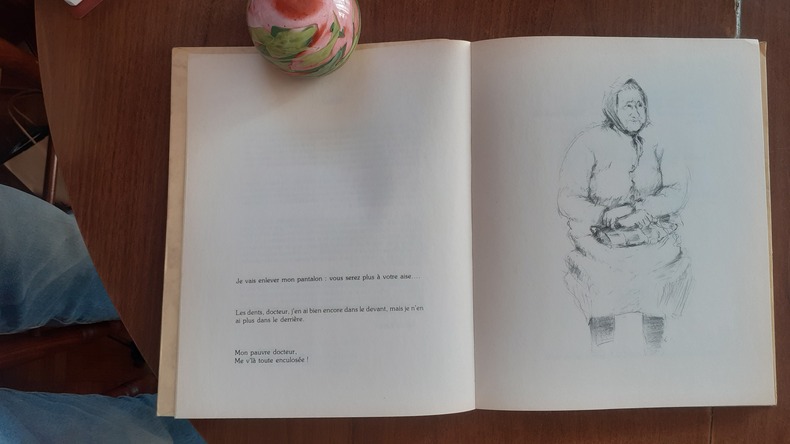 avant-propos de l'auteur (author's foreword) - thème (topic) : un coup d'oeil plein d'humanité sur une salle d'attente de médecin, croquis et poèmes - bon état (very good condition)