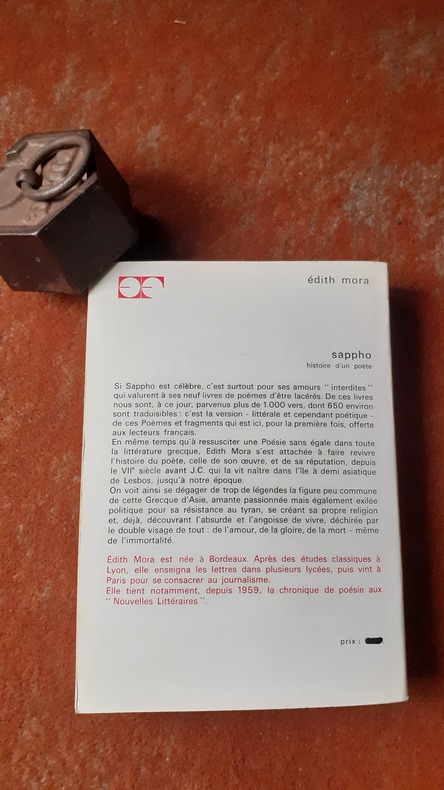 Edith Mora obtiendra le prix Broquette-Gonin de l' Academie Française pour cette traduction de Sappho. Voir le sommaire sur photos jointes.