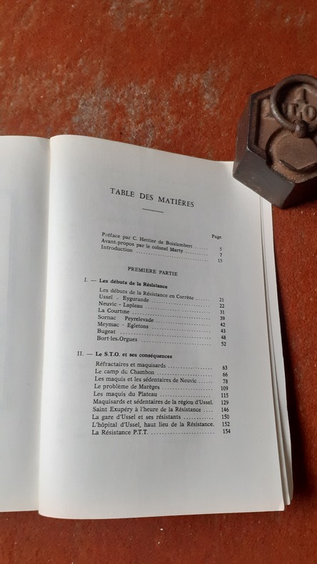 Récit circonstancié des combats de la Résistance et de ses sacrifices autour d'Ussel et sa région. Le département de la Corrèze fut l’endroit en France où les maquis connurent leur développement le plus important et menèrent les opérations armées les plus précoces et les plus spectaculaires. Les statistiques officielles établies par le service historique de l’armée de terre ont ainsi recensé 71 emplacements de camps de maquisards dans l’ensemble du département pour la seule Armée secrète (AS, d’obédience gaulliste). "Cet ouvrage modeste, destiné à relater quelques événements de la Résistance en Haute-Corrèze, est une œuvre collective des camarades de l'Amicale des Maquis. Pour le rédiger, nous avons interrogé des témoins de cette époque, sollicité des récits d'ancien résistants et maquisards..." Voir le sommaire sur photos jointes.