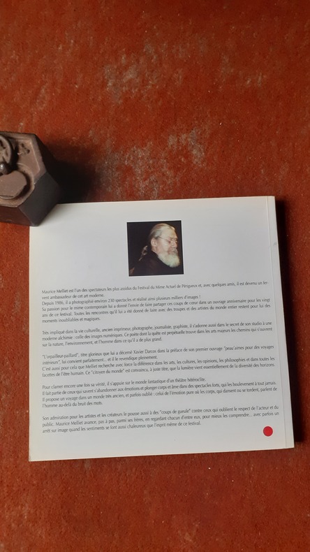 Maurice Melliet a photographié environ 230 spectacles dans le cadre du Festival du Mime Actuel de Périgueux. Ce livre témoigne de sa passion du mime contemporain. Voir le sommaire sur photos jointes.