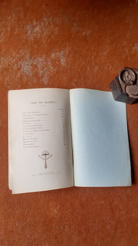 Sixième ouvrage de la Société des Pharmaciens Bibiophiles. Illustrations de Sylvain SAUVAGE gravées sur bois par Pierre Bouchet. Tirage limité à 200 exemplaires sur Vélin d'Arches (exemplaire nomonatif N°4). Joint une allocution prononcée à l'occasion du dîner organisé le 28 janvier 1937. Infimes piqures et usures.