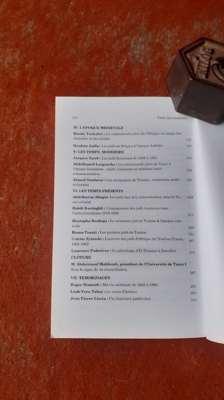 Premier colloque international sur l'histoire de la communauté juive de Tunisie qui a donné lieu à des riches contributions. Voir le sommaire sur photos jointes.