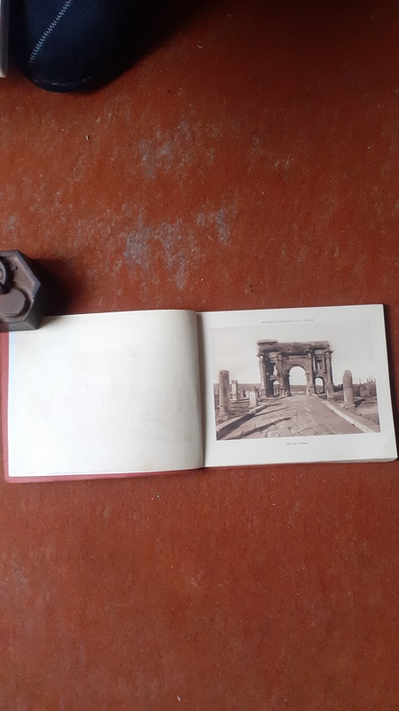 "Timgad, ou Thamugadi, est une cité romaine antique située dans la wilaya de Batna, en Algérie. Fondée par l'empereur Trajan vers l'an 100 de notre ère, elle est surnommée la ""Pompéi de l'Afrique du Nord"" en raison de son état de conservation remarquable. Le site est inscrit au patrimoine mondial de l'UNESCO depuis 1982. Le Musée de Timgad, construit entre 1930 et 1935, a été conçu pour présenter les découvertes archéologiques de la cité. Cet Album Artistique était probablement vendu comme un souvenir ou un ouvrage éducatif au musée ou aux visiteurs du site archéologique durant la période coloniale française, capitalisant sur l'intérêt pour l'archéologie romaine en Afrique du Nord"