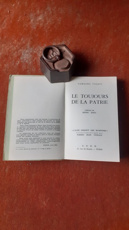 Tunis, SNED / Pierre Jean Oswald, 1962, in-8 br. (12 x 19), 158 p., coll. "L'aube dissout les monstres", préface de Henri Krea, ex-libris, bon état.