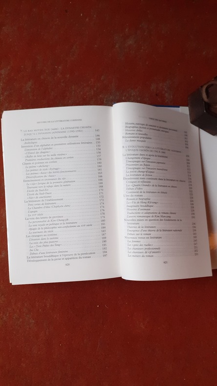 Adaptée d'une "Histoire générale de la littérature coréenne" en cinq volumes publiée en Corée par le professeur Cho Dong-il, cette "Histoire de la littérature coréenne" contribuera à faire connaître une littérature et une culture encore largement ignorées en France, chose paradoxale lorsque l'on sait que la Corée fut un pays où l'art d'écrire était cultivé à un point rarement atteint ailleurs, et où le talent littéraire assurait la promotion sociale. Cette étude cherche à combler un vide quasi complet dans le domaine alors que la production littéraire de la péninsule est, depuis l'Antiquité, d'une très grande richesse. Par son érudition bien dosée, sa rigueur et sa clarté, ce livre s'adresse à tout lecteur cultivé et curieux ; il répond aussi aux voeux des orientalistes désireux de mieux comprendre la culture coréenne ancienne et présente et d'en saisir sa spécificité dans la région du nord-est asiatique. Voir le sommaire sur photos jointes.