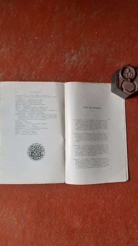 Marpon & Cie,1929, in-8 br. (17x25),316 p., coll. "Figures du Passé barbaresque", 12 planches de gravures, bandeaux et culs-de-lampe dessinés par René Gueriot, dos passé et recollé, intérieur propre, assez bon état.