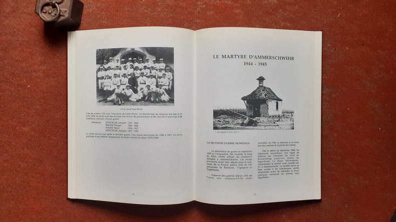 Bonne monographie, peu courante, produite par l'historien local Francis Lichtlé. Remarquable collection de photographies anciennes, certaines particulièrement évocatrices du "Martyre d'Ammerchwihr, 1944-1945" (pp. 75-123) et de sa reconstruction. In-fine liste sde Stettmeister et maires, adjoints au maire, curés de la paroisse.