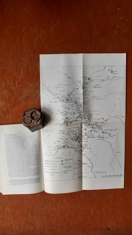 S.E.V.P.E.N., 1964, in-8 br. (16,5 x 24,5), 258 p., coll. "Bibliothèque générale de l'Ecole Pratique des Hautes Etudes, VIe section", préface de Robert Fawtier, une carte in-t., une grande carte dépl. h.-t., très bon état.