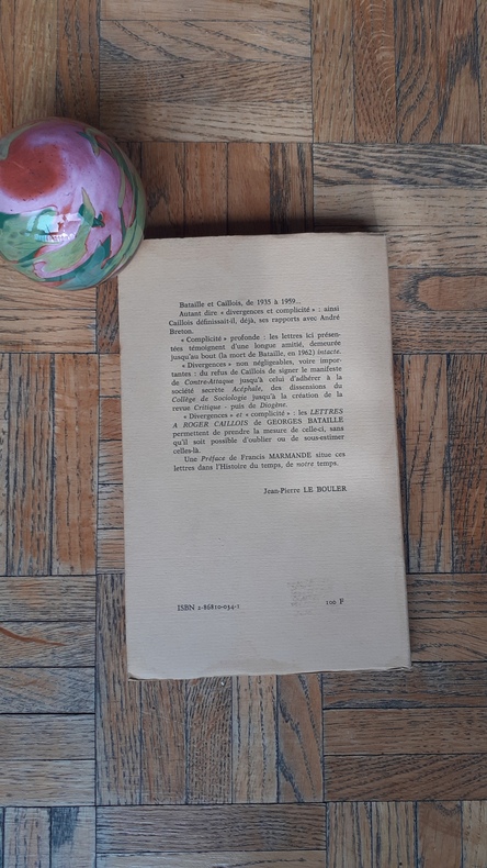 ed. Folle avoine 1987 in-8 br., presentees et annotees par Jean-Pierre LE BOULER, preface de Francis MARMANDE, en annexe correspondance BATAILLE-LEIRIS, et en appendice trois lettres et un post scriptum à J. PAULHAN, edition originale, ex. sur verge de Lana, non coupe