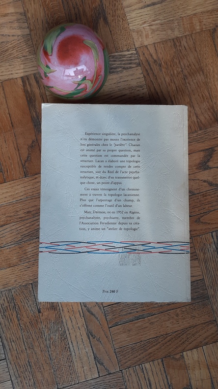 Expérience singulière, la psychanalyse révèle pourtant chez le "parlêtre" l’existence de lois générales d’une implacable rigueur. Chacun est animé par sa propre question, mais cette question est commandée par la structure. Lacan a élaboré une topologie susceptible de rendre compte de cette structure, soit du Réel de l’acte psychanalytique, et donc d’en transmettre quelque chose, un point d’appui. Ces essais sont la trace d’un cheminement à travers la topologie lacanienne. Plus que des tentatives d’élucidation, ils sont autant de lectures impératives, de reconstructions mises à l’épreuve, de questions posées à la topologie comme au Réel même. Voir le sommaire sur photos jointes.