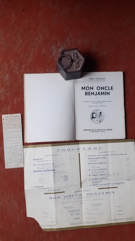 La comédie musicale "Mon Oncle Benjamin" a été créée à Paris le 23 janvier 1938 lors du gala de la Fédération Bourgogne-Morvan-Nivernais.