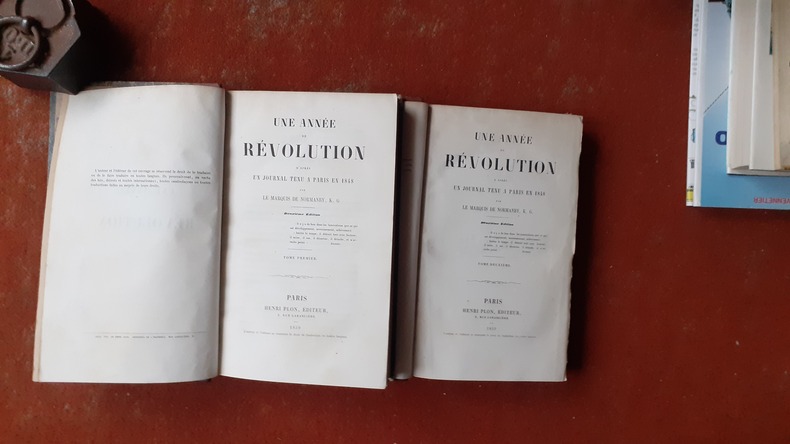 Témoignage de l'ambassadeur de Grande-Bretagne sur la Révolution de 1848 et ses conséquences. Le marquis de Normanby (1797-1863) siégea dès 1818 à la chambre des Communes dans les rangs du parti libéral anglais. Il fut nommé plus tard gouverneur de la Jamaique et favorisa de tout son pouvoir l 'émancipation des esclaves. En 1846, il accepta le poste d'ambassadeur à paris, où il fut témoin de la révolution de février 1848 et du coup d'état du 2 décembre 1851, auquel les instructions de Palmerston le forcèrent d'adhérer. Son récit fut réfuté par Louis Blanc (Larousse du XIXe s.) Voir le sommaire sur photos jointes.