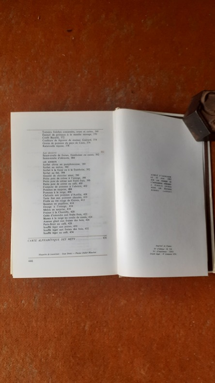 Première édition de cet ouvrage fondateur qui a fait date. Les recettes à proprement parler sont précédées d’un véritable petit traité sur les cuissons, les liaisons et les sauces : un condensé d’une clarté parfaite sur tout ce qu’on devrait savoir avant même de se lancer dans la cuisine. Voir le sommaire sur photos jointes.