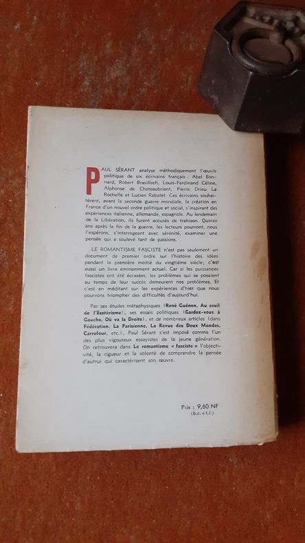 Paul Sérant analyse méthodiquement l'oeuvre politique de six grands écrivains de la littérature française : Abel Bonnard, Robert Brasillach, Louis-Ferdinand Céline, Pierre Drieu La Rochelle et Lucien Rebatet. Ces écrivains souhaitèrent la création en France d'un nouvel ordre politique et social, s'inspirant des expériences italiennes, allemande, espagnole. Au lendemain de la Libération ils furent accusés de trahison. Plus de soixante ans après la fin de la IIe Guerre mondiale le lecteur s'interrogeant sur cette époque pourra, nous l'espérons, examiner avec sérénité une pensée qui a soulevé tant de passions. Voir le sommaire sur photos jointes.