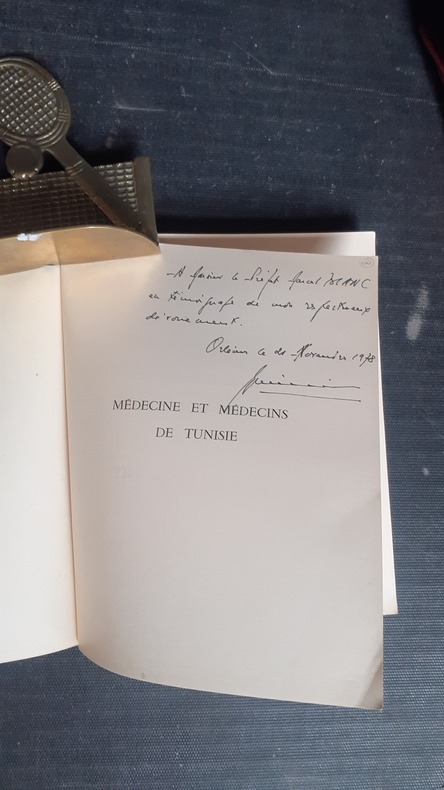 Société des Sciences Médicales de Tunisie, 1952, gr. in-8 br. (20 x 24,5), 335 p.,tirage à 2000 exemplaires, celui-ci l'un des 1500 exemplaires numérotés, préface de Lucien Paye, nombreuses ill. photos, fac-similés, envoi de l'un des auteur au préfet Marcel Blanc, bon état.