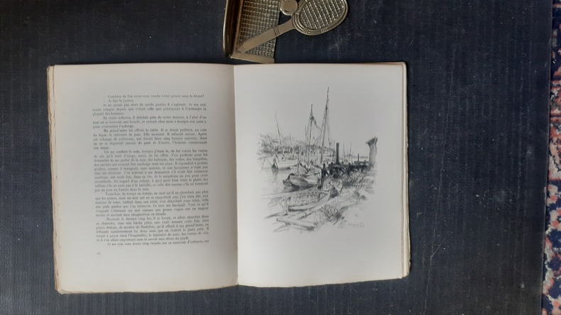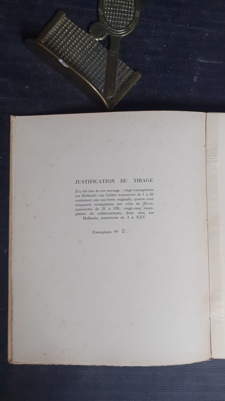 Librairie Auguste Fontaine, 1939, in-4 br. (23 x 28,5), 125 p., E.O., tirage à 495 exemplaires numérotés, celui-ci N° 249/450 sur vélin de Rives, 63 illustrations (dessins) de Paul-Adrien Bouroux, couverture rempliée avec vignette contrecollée, bon état.