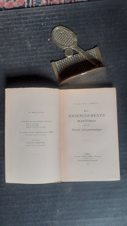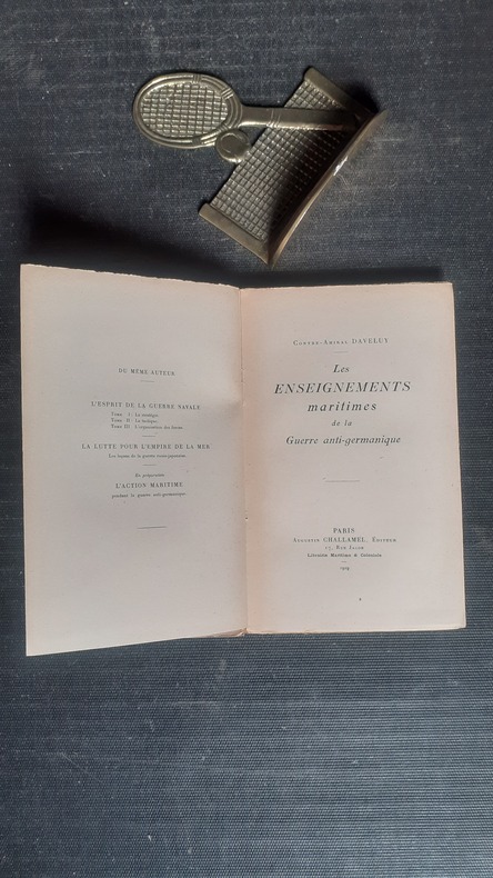 Le contre-amiral Daveluy (1863-1939) fait incontestablement partie des grands marins et écrivains maritimes français, de réputation mondiale. Inventeur du périscope dans les années 1890 avec son camarade Violette, créateur de l’aéronautique navale en 1910, commandant des unités françaises en Asie à la recherche de l’Emden en 1914, chef d’état-major de l’armée navale en 1916, il a surtout beaucoup écrit, se plaçant dès 1900 aux avant-postes du retour de la marine française à sa vocation guerrière après les errements de la "Jeune école". Après s’être fait connaître par son premier livre "le combat naval", couronné par l’Académie de sciences, puis par "La lutte pour l’empire de la mer", il livre ici une synthèse éblouissante de clarté sur la guerre maritime menée par les Alliés de 1914 à 1918. Comme toujours, il va à l’essentiel, sans mâcher ses mots. L’ouvrage intéressera donc ceux qui veulent appréhender simplement la dimension maritime de ce conflit. Voir le sommaire sur photos jointes.