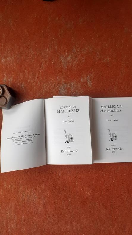 Res Universis, 1989, 2 vol. in-8 br. (14,5 x 20), 161 p. / 155 p., coll. "Monographies des villes et villages de France", réédition en deux volumes des deux parties du livre intitulé "Maillezais, son histoire, son passé", tirage strictement limité, fac-similé de l'édition de 1900, couverture illustrée, quelques ill., bon état.