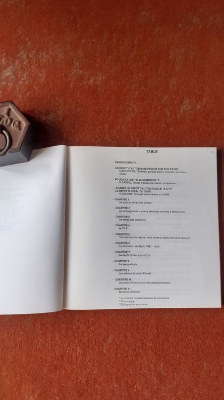 RATP (Mission prospective), vers 1986 - In-8° carré broché, couverture souple illustrée d'une carte postale (entrée du dépôt Les Lilas Bagnolet), 134 pages, le texte est émaillé de clichés hors textes en noir ( visages de mécaniciens, cheminots, batiments, Trams, Cartes Postales...etc) -: bel ensemble, chronologie, bibliograhie.