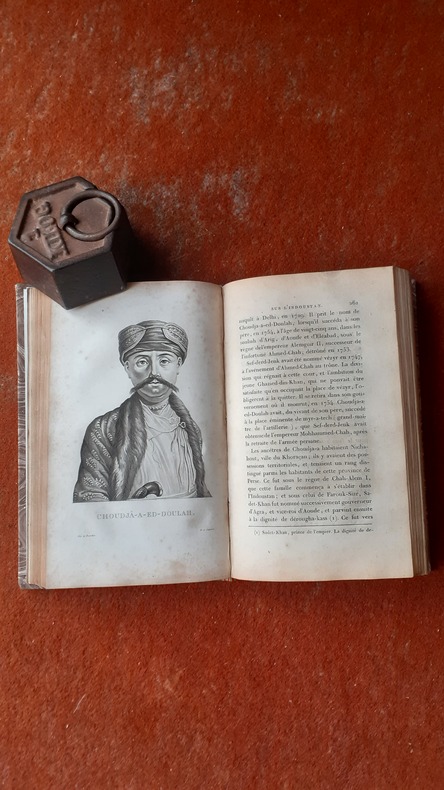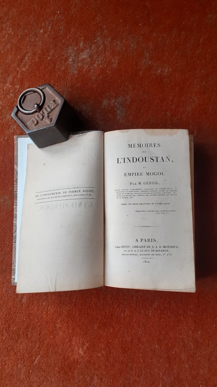 Unique édition posthume. Ces Mémoires furent publiés par le fils du Colonel Gentil. Le colonel Jean-Baptiste-Joseph Gentil (1726-1799), officier français, combattit en Inde sous Dupleix, Bussy, Law de Lauriston, etc., avant de se mettre au service du rajah d'Oudh ; ses Mémoires en portent témoignage. Il avait accumulé une impressionnante collection d'objets sur la période moghole de l'histoire indienne, avec une importante collection de manuscrits persans (la plupart des objets et manuscrits furent légués au roi). Il revint en France en 1777 avec une épouse indienne catholique, alors qu'il était parti pour l'Inde à l'âge de 25 ans en 1752. Il représenta les intérêts français auprès du puissant nabab Shuja al Dola, grand Vizir du Mogol. Sa position privilégié en Inde lui permit d'étendre ses observations, notamment sur l'art, les cultures et les moeurs indiennes.