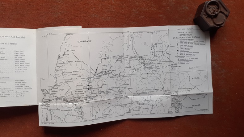 Bamako, Editions Populaires, 1972, in-8 br. (14 x 20),231 p., tome 2 sur les 3 parus, tableaux et graphiques, une carte dépl. in-fine sur le répartition de la population rurale de la région de Kayes, bon état.