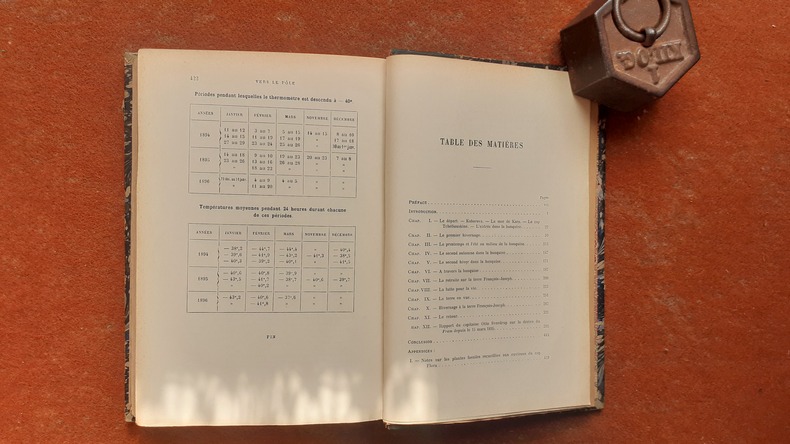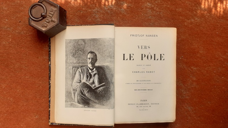 "Parti en 1893, l'explorateur norvégien Fridtjof Nansen (1861-1930) se fait volontairement prendre par les glaces dans la mer de Kara. Mais en seize mois il ne progressera que de 360 miles. Avec son compagnon Johansen, Nansen part alors en traîneau vers le nord et atteint la latitude de 86° 14' le 8 avril 1895 ; personne n'avait encore approché le pôle d'aussi près". Voir le sommaire sur photos jointes.