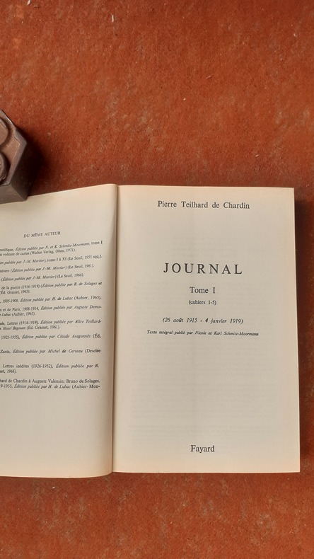 Fayard 1975, in-8 broché, 396 p. (une dédicace amicale en page de titre, sinon très bon exemplaire ; non réédité) Texte intégral de cet important document, nous renseignant sur les pensées, les lectures et les orientations spirituelles du célèbre jésuite pendant la Grande Guerre où il servit comme infirmier.