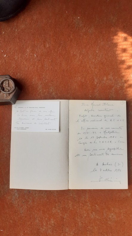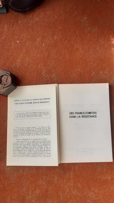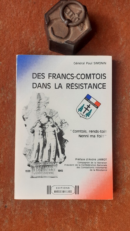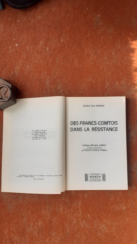 Lons-le-Saunier, Editions Marque-Maillard, 1983, in-8 br. (15,5 x 23), 173 p., préface d'André Jarrot, planches photos, cartes, plans fac-similés, bel envoi de l'auteur au préfet Marcel Blanc (déporté résistant), complet de son additif de 4 pages sur feuillet volant, très bon état.