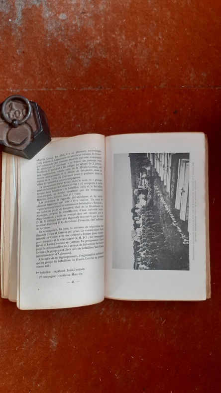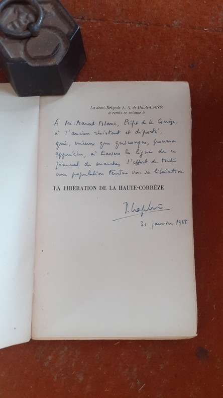 Dijon, Imprimerie Darantiere, in-8 br. (14,5 x 22,5), 130 p., préface du colonel Marty (Dudeux), non daté (c. 1945), avec 7 croquis et 4 photographies, un plan de la Haute-Corrèze sur feuillet volant, bel envoi de J. Craplet à Marcel Blanc (ancien résistant, préfet de Corrèze de 1968 à 1971), exemplaire non coupé, très bon état.