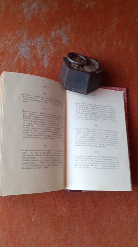 L’auteur qui était en garnison à Blida a puisé dans trois sources pour cette importante monographie : la descendance du fondateur de Blida sidi Ahmed el-Kebir notamment pour la partie légendaire, les mémoires des derniers fonctionnaires du gouvernement turc employés à Blida et les documents de l’administration militaire à partir de l’occupation par les français de la ville en 1838. "Monographie, bourrée de toute sorte de détails, légendaires et historiques" (Tailliart). Les premiers chapitres ont été écrits en 1864. Voir le sommaire sur photos jointes.