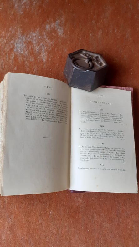 Alger, Adolphe Jourdan, 1887, in-8 rel. 1/2 chagr. bordeaux (12,5 x 19,5), XX-1040 p., E.O., 2 tomes reliés en un volume, reliure récente, couverture conservée, dos muet, ex-libris, très bon état.