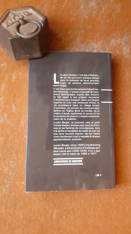 Les gens simples n’ont pas d’histoire, dit-on. Ils survivent quelque temps dans la mémoire de leurs proches, avant de sombrer définitivement dans l’oubli. C’est à eux que ce livre entend d’abord rendre hommage. L’auteur a recueilli de nombreux témoignages auprès des anciens, et fait appel à ses propres souvenirs d’enfance pour évoquer — dans une langue superbe et avec une tendresse infinie — la vie quotidienne dans un village lorrain du pays de Nied d’autrefois. Un univers aux contours bien définis, où l’Église dicte sa morale, où le maître d’école représente le savoir, et où la conduite de chacun s’inspire exclusivement de la tradition. Lucien Borger — se tournant vers ce petit monde disparu — évoque pour nous les hommes et les femmes de cette époque, durs à la tâche et travaillant du matin au soir sur une terre souvent ingrate, qui les faisait vivre chichement, mais à laquelle ils étaient passionnément attachés. Voir le sommaire sur photos jointes.