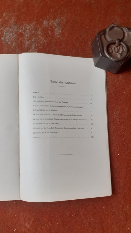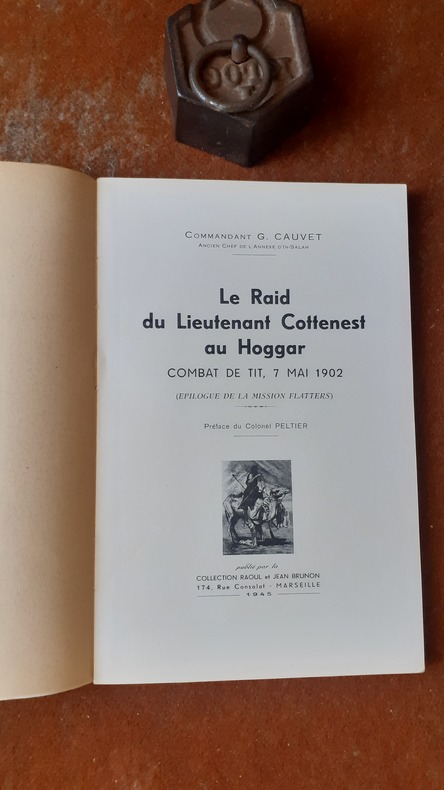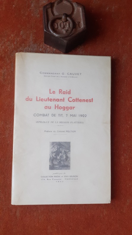 Le commandant Cottenest (1870-1914) est affecté aux Zouaves, puis aux Affaires indigènes en Algérie. "Le raid de Cottenest n'est pas connu. C'est cependant lui qui a ouvert le Sahara et permis la reprise des relations entre le Soudan et la Berbérie, pratiquement interrompues depuis l'invasion musulmane" (G.G). En 1902, une expédition punitive contre les tribus touareg est décidée par le général Laperrine. La troupe est composée de quatre-vingt-dix méharistes, chaque tribu touareg ralliée à la France devait envoyer un contingent. Ce fut le goum Cottenest, dont l'effectif fut complété à cent trente fusils par l'adjonction de quarante moghaznis, la plupart sont des Châamba d'Ouargla. Le départ a lieu le 23 mars 1902. Le 7 mai, au village de Tit, Cottenest, attaqué par les Touareg, remporte la victoire, avec seulement trois tués et une dizaine de blessés. Les pertes des Touareg s'élèvent à quatre-vingt-treize morts et de nombreux blessés. Le chef touareg Mohammed Ag Bessa y trouve la mort. Voir le sommaire sur photos jointes.