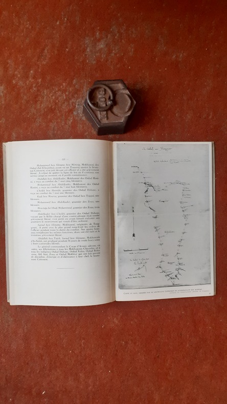Marseille, Collection Raoul et Jean Brunon, 1945, in-8 br. (16 x 24,5), 146 p., 1ère édition, préface du colonel Peltier, nombr. ill. photo., fac-similés, plan, , 1 portr., 1 carte dépl. in-fine du raid, sous papier cristal, très bon état.