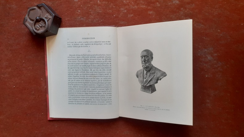 Masson et Cie, 1929, in-8 rel. 1/2 chagr. (18,5 x 23,5), 48 p., Coll. du Centenaire de l'Algérie "Etudes scientifiques / L'œuvre médicale de la France en Algérie", 22 fig. h.-t. (photos, fac-similés), envoi de E. Sergent, reliure récente, dos muet, ex-libris, très bon état.