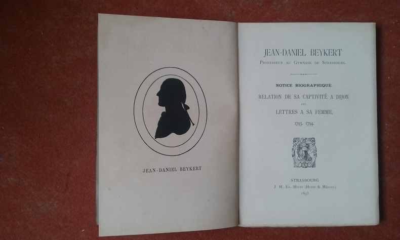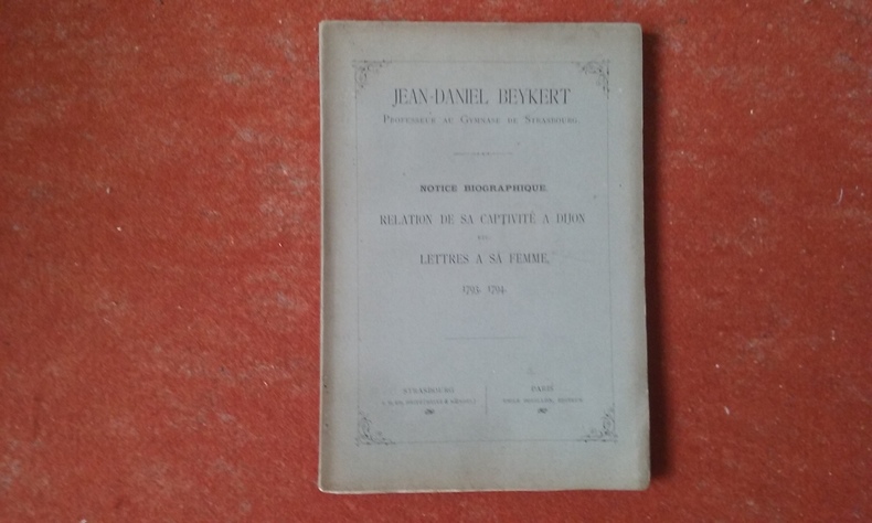 Strasbourg, J. H. Ed. Heitz / Paris, Emile Bouillon, 1893, in-8 br., XXIII-125 p., un portrait de Jean-Daniel Beykert en front., exemplaire non coupé, très bon état.