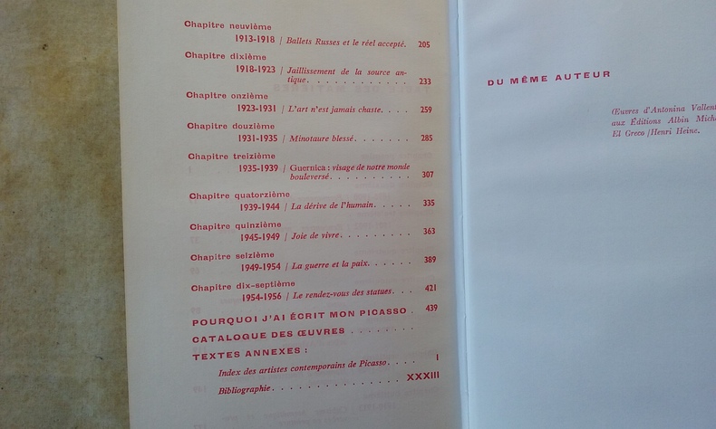 Intéressante monographie du grand peintre, traduite en français par Charles Descloux.L'ouvrage s'articule autour de 11 chapitres : Enfance et jeunesse 1881-1901 ; Les périodes bleues et roses 1901-1906 ; Picasso dessinateur et graveur ; Le Cubisme 1907-1917 ; Picasso sculpteur ; Les années vingt et trente 1918-1936 ; Picasso créateur d'affiches ; L'expérience de la guerre 1937-1945 ; Picasso céramiste ; La dernière période 1946-1973 ; Pablo Picasso 1881-1973 : vie et oeuvre. Nombreuses illustrations en couleurs.Bel exemplaire.