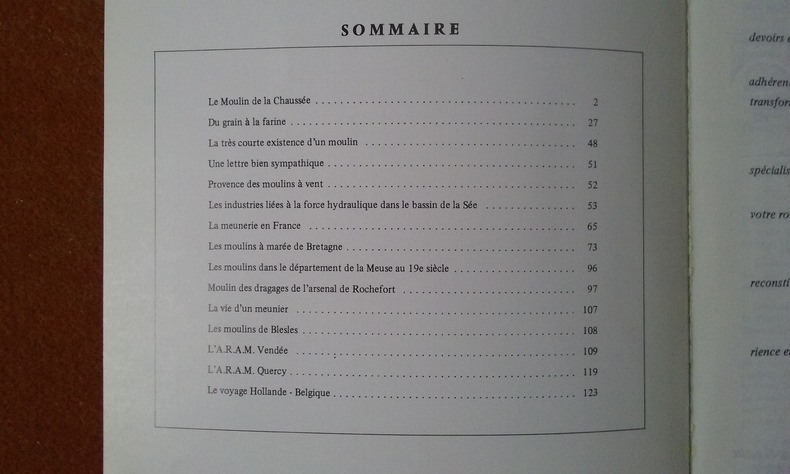 Le Moulin de la Chaussée (Saint-Maurice 94) - Les industries liées à la force hydraulique dans le bassin de la Sée - La meunerie en France - Les moulins à marée en Bretagne - Les moulins dans le département de la Meuse au 19e siècle - Moulin des dragages de l'arsenal de Rochefort - Les moulins de la Blesles.... Voir le sommaire complet sur photos jointes;