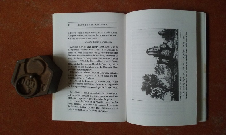 Office d'édition du livre d'histoire, 1996, in-8 br., 111 p., coll. "Monographies des Villes & Villages de France", fac-simile de l'ouvrage paru en 1875, tirage numéroté limité (N° 152), illustré d'un dessin pleine page représentant les ruines du château de Méru vers 1640, couverture avec trace de salissure en bordure, intérieur propre, bon état.