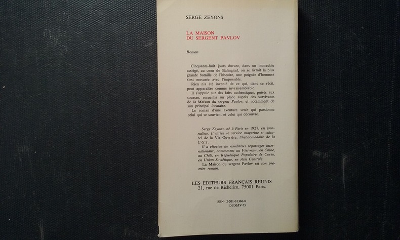 La maison Pavlov est le nom d'un bâtiment fortifié tenu par les Soviétiques durant la bataille de Stalingrad du 27 septembre 1942 au 2 février 1943. Il tient son nom du sergent Yakov Pavlov qui a commandé un temps le peloton de la 13ᵉ division de la garde qui a pris et défendu le bâtiment. Ce livre est un roman d'une aventure vraie qui s'appuie sur des faits authentiques.
