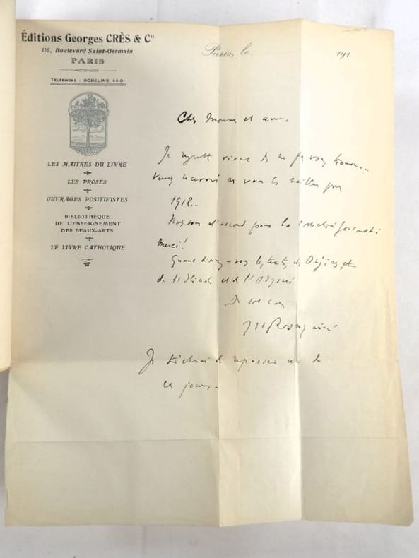 Exemplaires sur papier de Rives numérotés, 21 vol. petit in-8 br. sous couv. rempliée, collection Les Maîtres du Livre, George Crès et Cie : Vies imaginaires, 1921 ; Le Roi au Masque d'Or, 1917 ; Le Chemin de Velours, 1923 ; L'Apprentie, 1920 ; Le Feu (2 Tomes - Complet), 1919 ; Au flanc du Vase, 1919 ; Au Jardin de l'Infante, 1924 ; Physiologie de l'Amour Moderne, 1917 ; Les autres vies et les autres mondes, 1924 ; Colette Baudoche, 1918 ; Le coeur solitaire, 1922 ; La porte étroite, 1920 ; Le Deuil des Primevères, 1920 ; Le Bon Plaisir, 1918 ; Les Jeux rustiques et divins, 1925 ; Le Sang des Races, 1921 ; Le Trésor des Humbles, 1921 ; Contes choisis, 1919 ; La Maison du Péché, 1913 ; Barnavaux, 1921