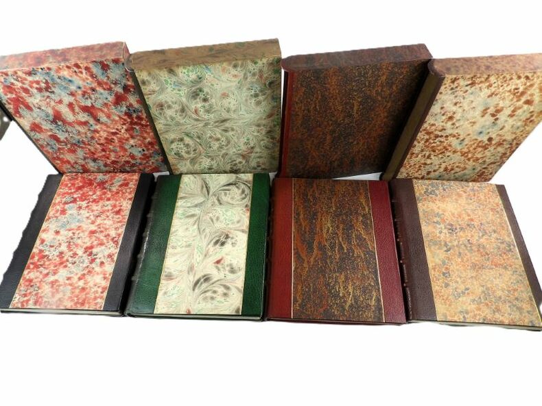 Défauts mineurs sur les chemises et étuis, sinon exceptionnel exemplaire, magnifiquement relié, et enrichi de 5 dessins originaux ainsi que de 24 suites sur divers supports : "en sanguine sur Chine fort", "en noir sur Chine fort", "sur Chine mince", "en sanguine sur Japon", "en noir sur Japon" et "en noir sur vélin". René Gas (né en 1896 ?) était et reste un homme de l’ombre, sur lequel on dispose de peu d’informations. On sait cependant qu’il a d’abord travaillé au sein des éditions Georges Crès et Cie. En 1925, il prend la co-direction, avec Camille Sauty, de cette maison dont il conserve le nom et l’esprit. Mais la société affronte des difficultés financières si importantes qu’elles entraînent sa faillite en 1935. Vers la fin des années 1940, on retrouve René Gas chez Rombaldi, comme directeur de collection : il s’occupe notamment de celle qui rassemble les « maîtres de l’estampe française contemporaine », publiant de luxueux albums. Les liens tissés au fil de sa carrière, tant avec des écrivains qu’avec de nombreux artistes, l’ont probablement incité à se lancer dans le marché de l’art : devenu directeur de la galerie André Maurice, sise au 140 boulevard Haussmann à Paris, il expose des œuvres de Jean Marchand, Charles Camoin, Henry E. Burel, Lucien Mainssieux, etc. Henry Charpentier (1889-1952) commence très tôt, alors qu’il est élève au collège d’Etampes, puis étudiant en médecine, à écrire des poèmes. Son Tombeau de Stéphane Mallarmé, publié en 1910, lui ouvre les portes des cénacles parisiens fidèles au Symbolisme : le docteur Bonniot le désigne comme exécuteur testamentaire des œuvres du Maître, et il accède au poste de secrétaire général de l’Académie Mallarmé en 1938. Très lié notamment au poète Vincent Muselli, à l’éditeur Georges Crès, ainsi qu’à de nombreux artistes illustrateurs, il est réputé pour être un poète exigeant et d’une grande érudition. L’Académie française lui décerne le prix Heredia pour ses Sonnets, en 1950. Ses Poésies complètes paraissent en 1956, quatre ans après sa mort (des suites d’un grave accident de voiture). - Clients Livre Rare Book : Les frais postaux indiqués sont ceux pour la France métropolitaine et la Corse, pour les autres destinations, merci de contacter la librairie pour connaître le montant des frais d'expédition, merci de votre compréhension. Livre Rare Book Customers : The shipping fees indicated are only for France, if you want international shipping please contact us before placing your order, thank you for your understanding. - Frais de port : -Colissimo France 31 € -Colissimo International (Union Européenne + Suisse : 70 €) (Reste du Monde : 205 €)