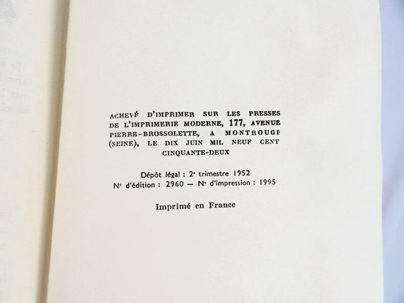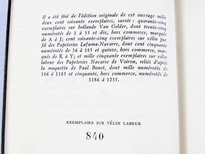 Paris, nrf Gallimard, 1952. In-8 - 18 x 11,5cm. Cartonnage éditeur d’après la maquette de Paul Bonet. 327 pages paginées, 2 feuillets . Tirage limité à 1235 exemplaires, dont celui-ci sur Vélin Labeur.