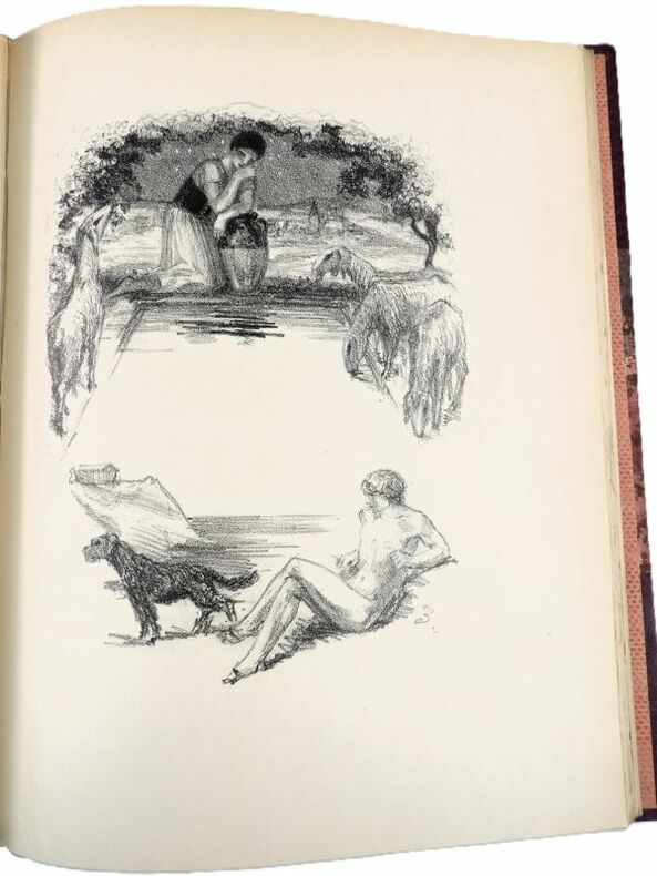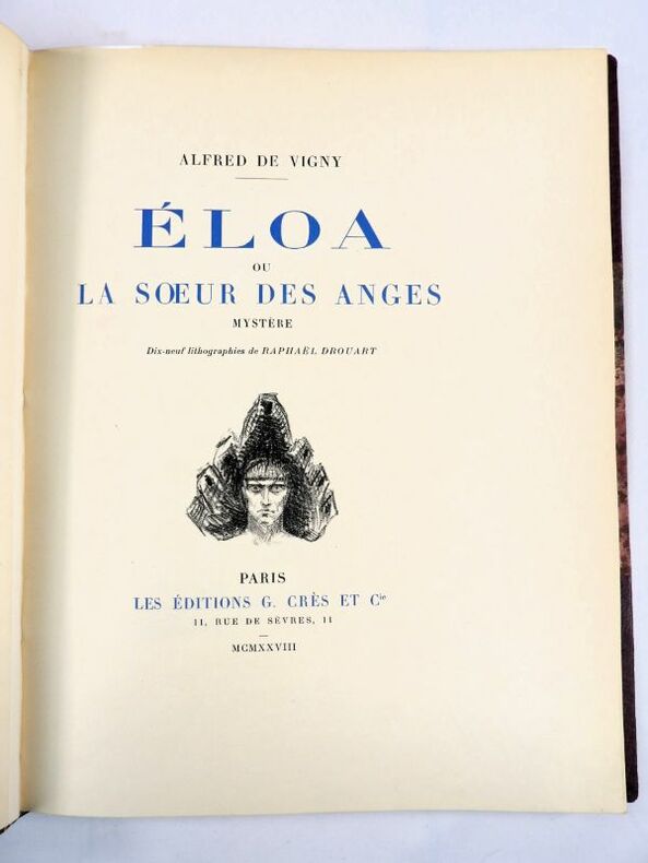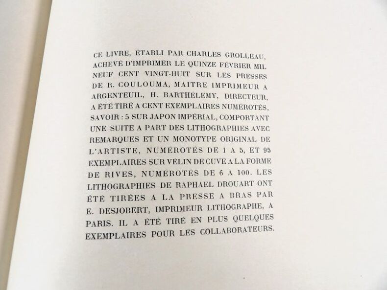 Paris, les éditions G. Crès et Cie, 1928. In-folio - 33 x 26 cm. Reliure en demi-maroquin à coins aubergine, dos lisse titré, date en queue, tête dorée, couvertures et dos conservés. Ouvrage orné de 19 lithographies de Raphaël Drouart.Exemplaire sur Japon impérial, l'un des 100 exemplaires avec suite et remarques avant la lettre.