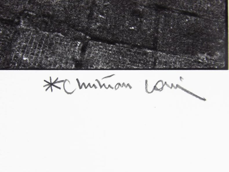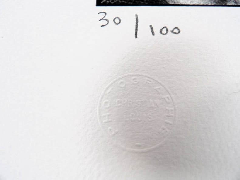 Sans lieu, sans mention d'éditeur, sans date (circa 1970-1995). 50 x 65 cm. Tirage photographique original sur papier d'Arches. Tirage limité à 100 exemplaires, numérotés et signés au crayon par le photographe. Tampon à sec "Photographie Christian Louis".